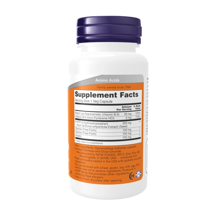5-HTP 200mg Double Strength Now Foods hỗ trợ tâm trạng tích cực 60 viên