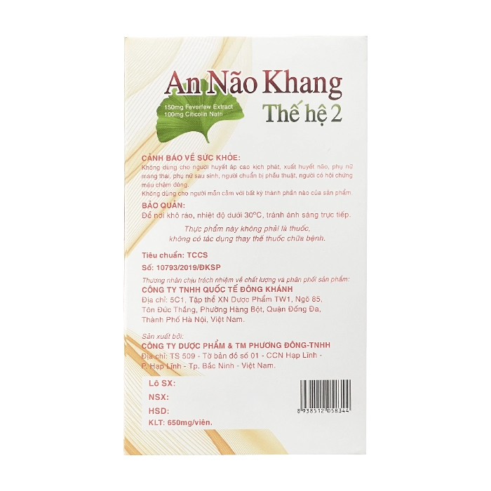 An Não Khang Thế Hệ 2 Phương Đông Pharma hỗ trợ hoạt huyết, tuần hoàn não 28 viên