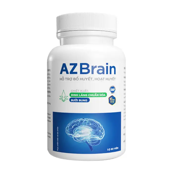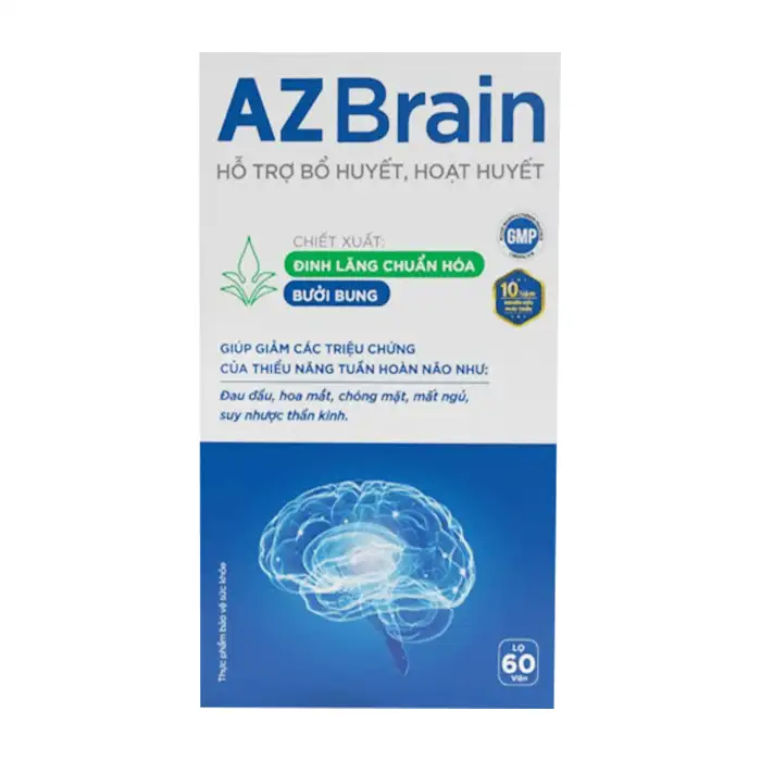 Viên uống bổ não AZBrain CVI Pharma 60 viên hỗ trợ bổ huyết, hoạt huyết, giúp làm giảm các triệu chứng của thiếu năng tuần hoàn não như: đau đầu, hoa mắt, chóng mặt, mất ngủ, suy nhược thần kinh, huyết áp thấp, lú lẫn hay quên.