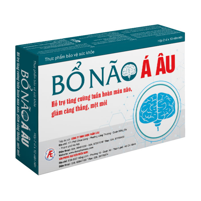 Viên uống Bổ Não Á Âu hỗ trợ tăng cường tuần hoàn máu não, hỗ trợ giảm căng thẳng, mệt mỏi, suy giảm trí nhớ, đau đầu, chóng mặt do thiểu năng tuần hoàn não.