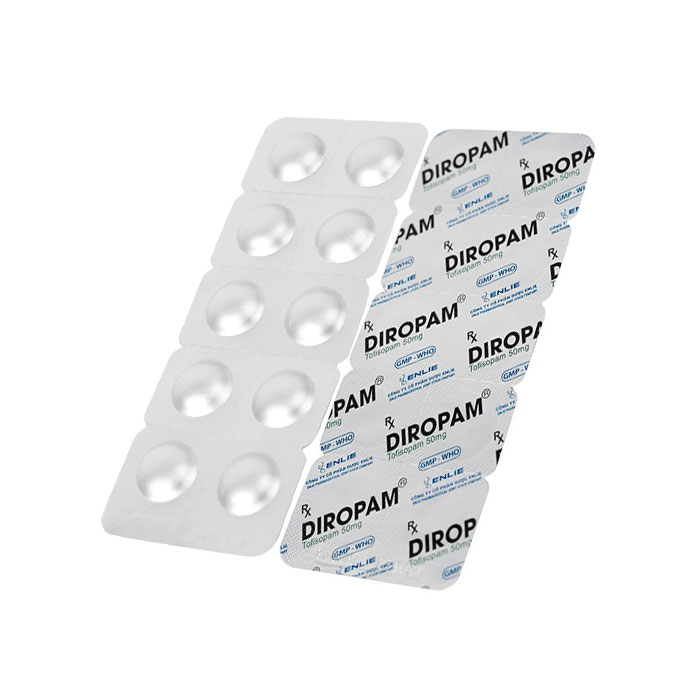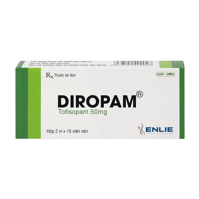 Thuốc Diropam 50mg Enlie điều trị triệu chứng đau thắt ngực giả, tiền mê sảng có thành phần: