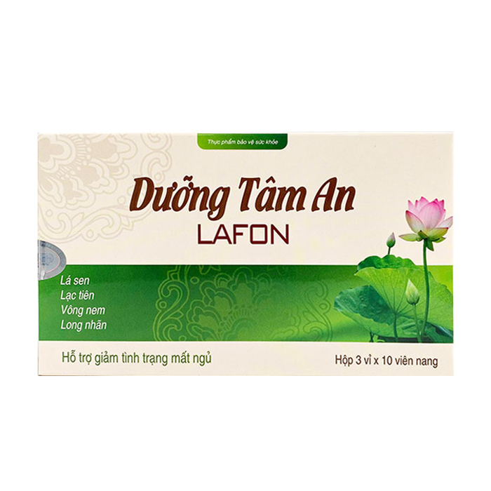Thực phẩm bảo vệ sức khỏe Dưỡng Tâm An Lafon hỗ trợ tạo giấc ngủ sinh lý, giúp ngủ ngon và sâu giấc. Giúp giảm tình trạng mất ngủ, suy nhược thần kinh.