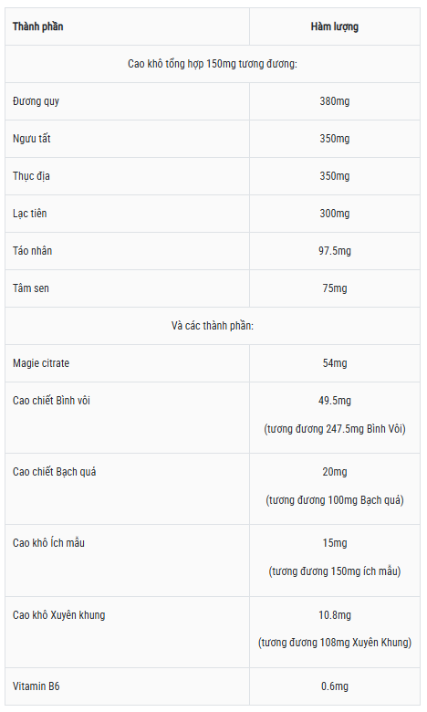 - Cao khô Ích mẫu: Có tác dụng làm bền thành mạch, hạ huyết áp, thải huyết ứ và sinh huyết mới.