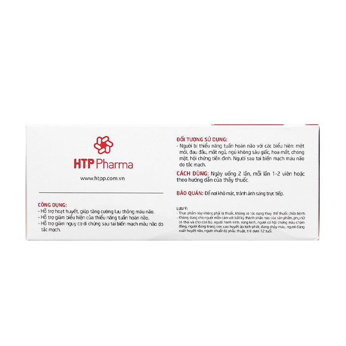 Ngoài ra, sản phẩm còn có tác dụng giảm ứ trệ của tuần hoàn máu não, hỗ trợ giảm nguy cơ di chứng sau tai biến mạch máu não do tắc mạch.