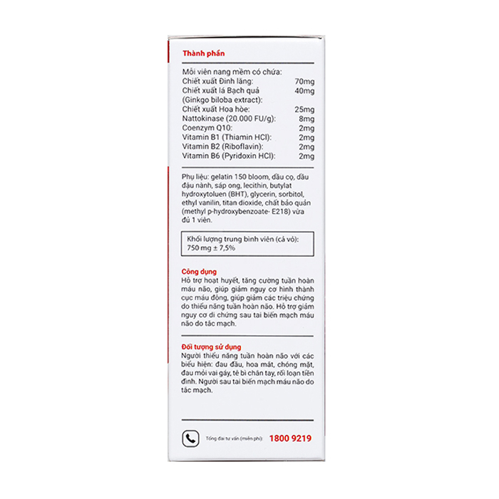 Viên uống Hoạt Huyết Kawa hỗ trợ tăng cường lưu thông máu não, cải thiện tuần hoàn và giảm nguy cơ hình thành cục máu đông. Giảm các triệu chứng do suy giảm tuần hoàn não như đau đầu, chóng mặt.