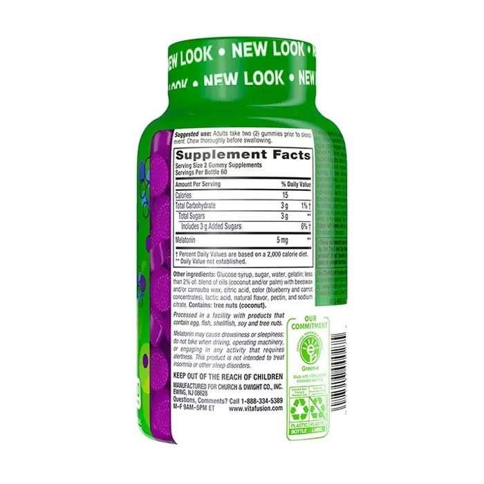 Kẹo dẻo giúp ngủ ngon Vitafusion Melatonin 5mg bổ sung Melatonin giúp hỗ trợ giấc ngủ. Trợ giúp phục hồi khả năng buồn ngủ về đêm và thức dậy khi trời sáng một cách tự nhiên.