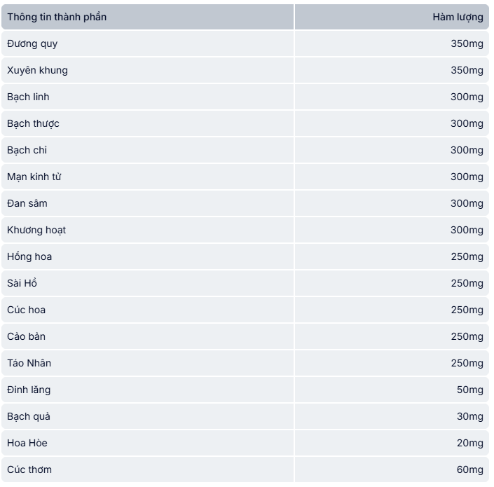 - Đương quy: Có tác dụng bổ huyết, tăng cường tuần hoàn não