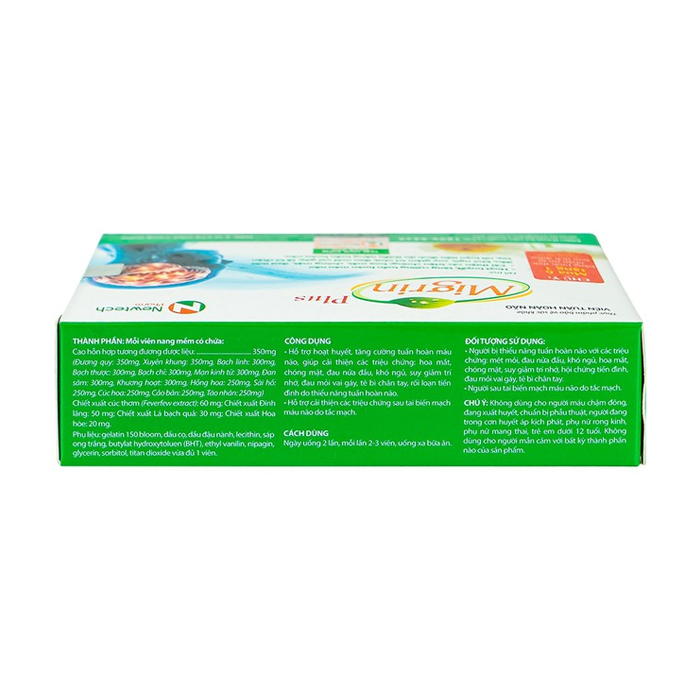 - Sản phẩm hỗ trợ hoạt huyết, tăng cường tuần hoàn máu não, giúp cải thiện các triệu chứng: hoa mắt, chóng mặt, đau nửa đầu, khó ngủ, suy giảm trí nhớ, đau mỏi vai gáy, tê bì chân tay, rối loạn tiền đình do thiểu năng tuần hoàn não.