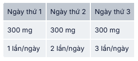 Có thể dùng liều 300 mg x 3 lần/ngày vào ngày thứ nhất hoặc dùng theo bảng hướng dẫn sau: