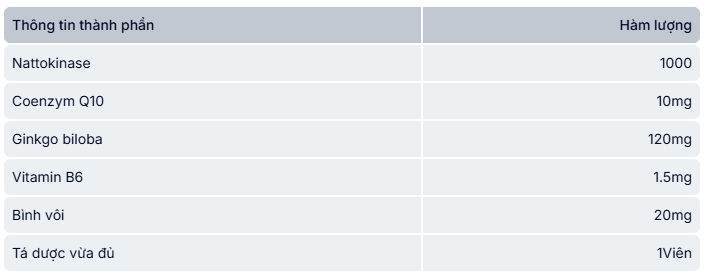 - Sản phẩm hỗ trợ làm tan huyết khối (cục máu đông) trong lòng mạch, giúp tăng tuần hoàn máu. Hỗ trợ giảm nguy cơ tai biến mạch máu não và thiểu năng tuần hoàn.