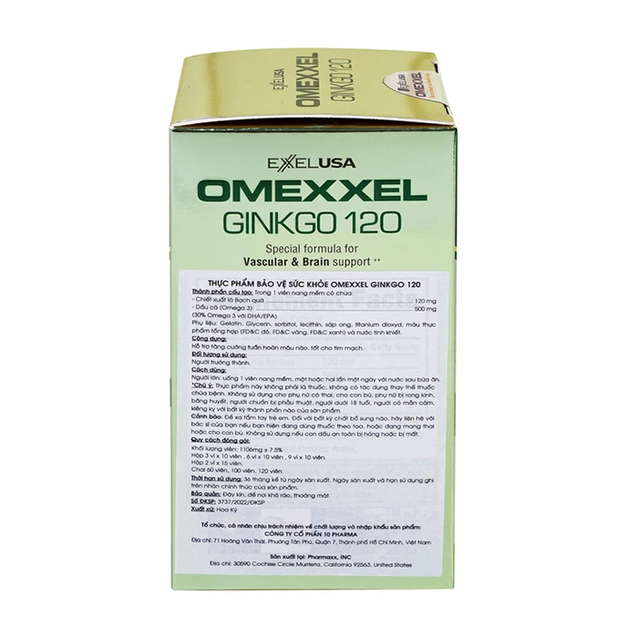 Omexxel Ginkgo 120 được sản xuất trên dây chuyền nhà máy đặt chứng nhận bởi FDA - cơ quan Quản lý Thực phẩm và Dược phẩm hàng đầu tại Mỹ. Ngoài chất lượng ưu việt, Ginkgo 120 còn có mẫu mã đẹp mắt, sang trọng và nhập khẩu nguyên hộp 100% từ Mỹ.