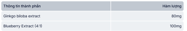 - Ginkgo biloba: Có chứa hàm lượng flavonoid và terpenoid cao - là các chất chống oxy hóa mạnh mẽ, góp phần chống gốc tự do, tác nhân chính gây ra bệnh tật. Đồng thời giúp lưu thông máu, kích thích và tăng tuần hoàn não, bảo vệ tế bào, ngăn chặn kết tập tiểu cầu, vón cục máu đưa oxy và các chất dinh dưỡng đến các vùng não bộ.