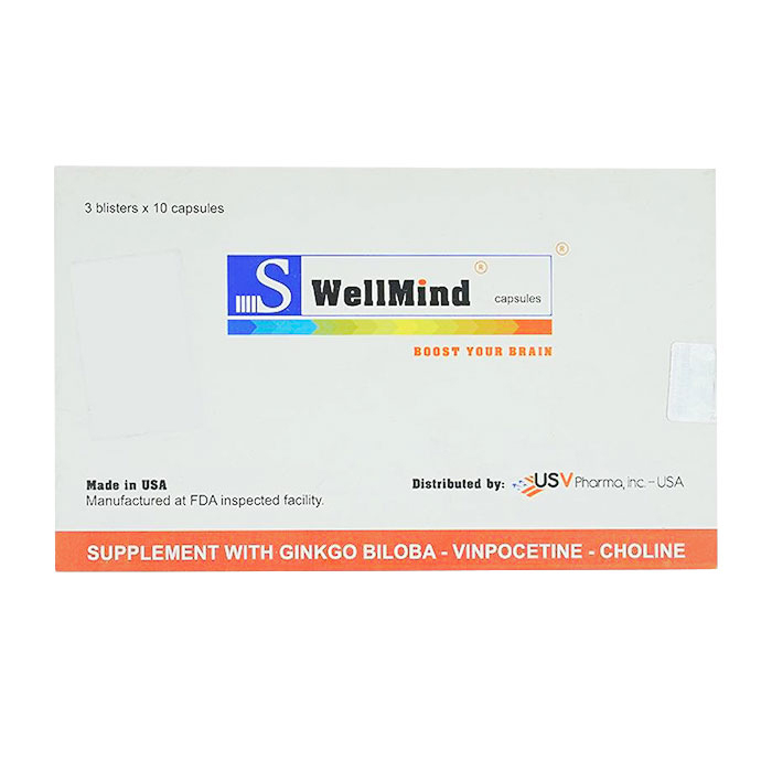 Viên uống bổ não S WellMind USV 30 viên giúp tăng cường tuần hoàn máu não, phòng ngừa thiểu năng tuần hoàn não. Tăng cường trí nhớ, hỗ trợ lưu thông máu và tứ chi.