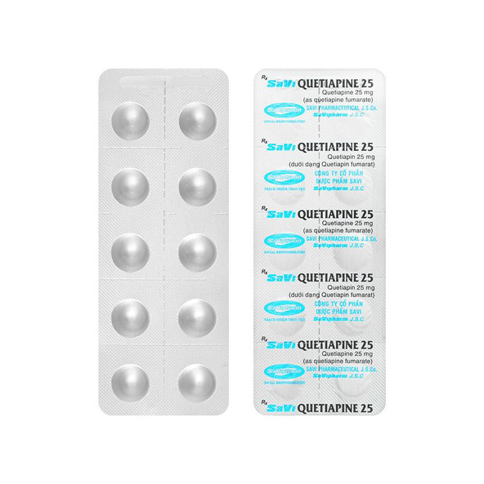 Thuốc Savi Quetiapine 25 có thành phần chính là quetiapin được sử dụng để điều trị tâm thần phân liệt, bệnh rối loạn lưỡng cực bao gồm các cơn hưng cảm từ trung bình đến nặng hoặc trầm cảm liên quan đến bệnh rối loạn lưỡng cực, phòng tái phát cơn hưng cảm hay trầm cảm ở bệnh nhân rối loạn lưỡng cực đáp ứng điều trị với quetiapin.