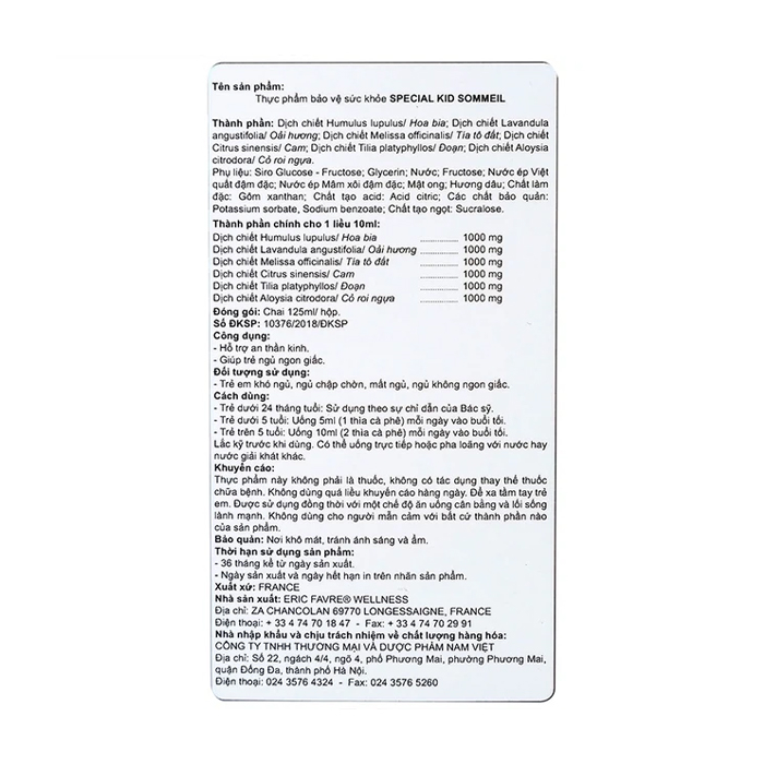 Siro Special Kid Sommeil hỗ trợ an thần kinh., giúp trẻ ngủ ngon giấc.