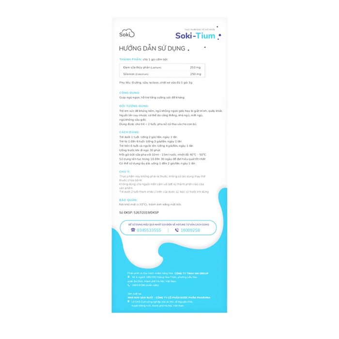 Bột hòa tan Soki-Tium giúp ngủ ngon, hỗ trợ tăng cường sức đề kháng.