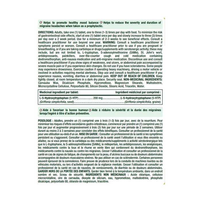 - L-5-Hydroxytryptophan (5-HTP) 200 mg (Griffonia simplicifolia, hạt).