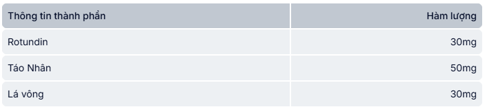- Rotundin: Thành phần được làm từ cây bình vôi có tác dụng giảm căng thẳng lo âu và hỗ trợ trị mất ngủ.