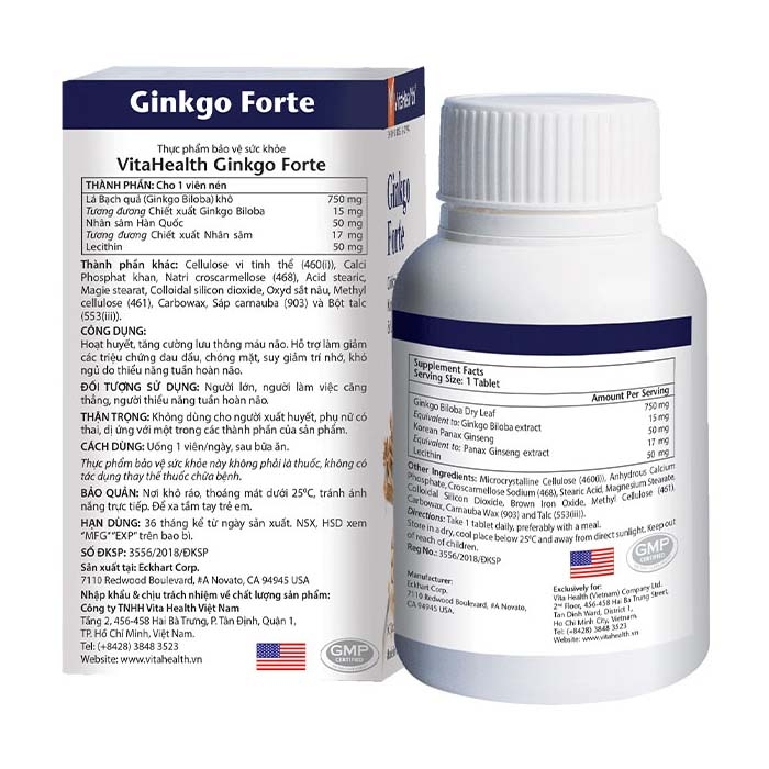 Thực phẩm bảo vệ sức khỏe VitaHealth Ginkgo Forte hỗ trợ hoạt huyết, dưỡng não. Giúp cải thiện suy giảm trí nhớ do thiếu năng tuần hoàn não.