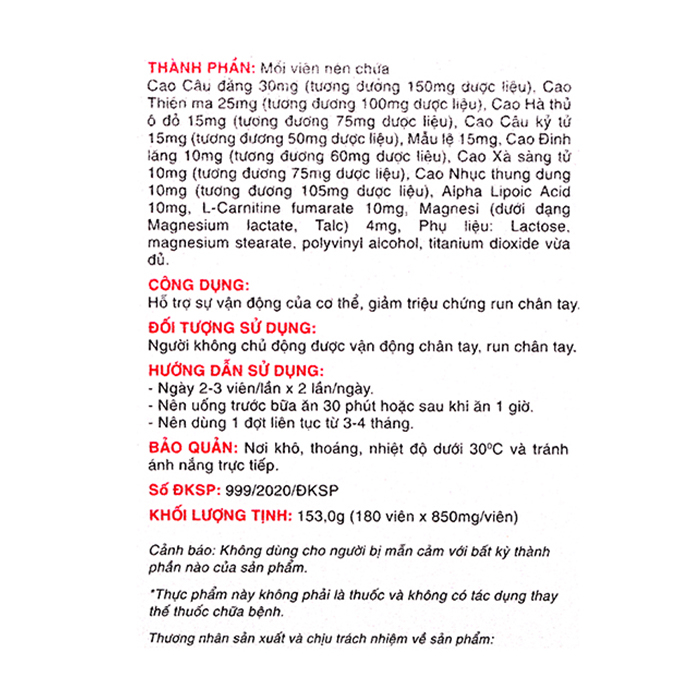 Viên uống Vương Lão Kiện hỗ trợ sự vận động của cơ thể, giảm triệu chứng run chân tay.