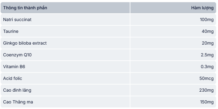 - Natri succinate: Có tác dụng kích thích hệ thần kinh, tăng cường sự tỉnh táo, tập trung và phản xạ đối với môi trường xung quanh.